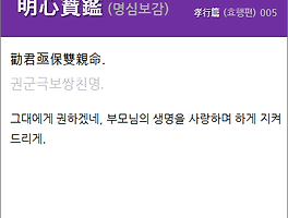 ■兒飽暖 親常問 父母飢寒不在心. ■아포난 친상문 부모기한부재심. ■아이가 배부르게 먹고 따뜻하게 옷을 입는지 부모님은 항상 걱정하시지만, 부모님의 배고픔과 추위를 (자식은) 마음에 두지 않는구나.