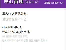| 明心寶鑑(명심보감) 正己篇(정기편) 024. 三人行(삼인행) 必有我師焉(필유아사언). (0) | 2018.04.27 |
