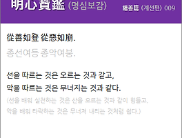 | 明心寶鑑(명심보감) 繼善篇(계선편) 009. 從善如登(종선여등) 從惡如崩(종악여붕). (0) | 2019.07.25 |