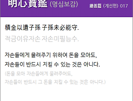但存心裡正 不用問前程. 단존심리정 불용문전정. 마음속에 올바름만 있다면, 앞날을 물을 필요가 없다. (올바른 마음으로 살아간다면 앞날을 걱정할 필요가 없다.)