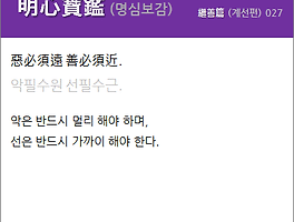 | 明心寶鑑(명심보감) 繼善篇(계선편) 027. 惡必須遠(악필수원) 善必須近(선필수근). (0) | 2019.08.12 |